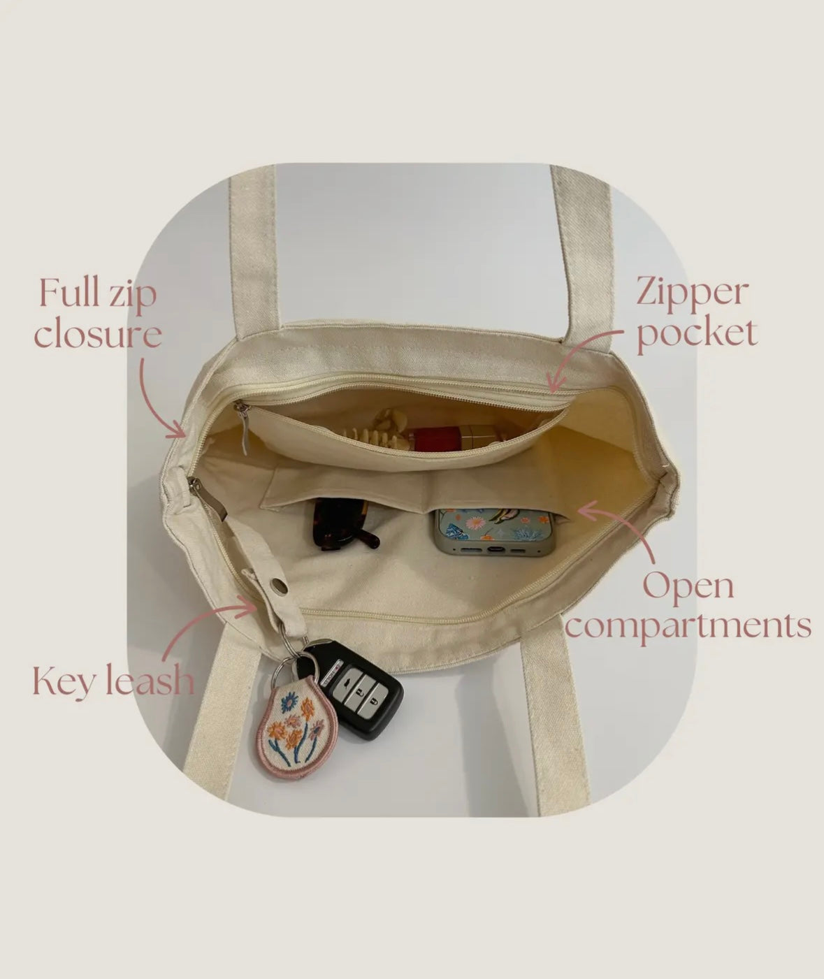 • Full zipper closure